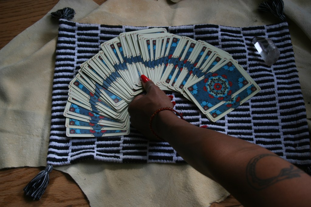 “Ale has a powerful connection with her guides and ancestors that I could feel since the first moment. When she sits in front of me to give me a tarot reading, I feel myself entering a sacred and genuine space. It’s as if spirituality/unconscious itself were opening. Beyond this, her readings have also been therapeutic for me. They’ve been a guide to untangle things that it in the moment I didn’t understand; or sometimes the readings help me to make or not make a certain decision. These readings make it so that you can explore places that sometimes scare us, but in going there you learn how to navigate it. I thank Ale for sharing her magic and witchy spirit.” -M.F translated from Spanish to English.